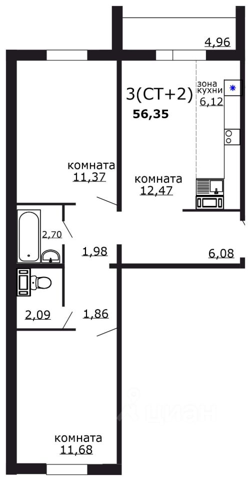Квартира подходит под семейную ипотеку. Сдача дома апрель 2027
