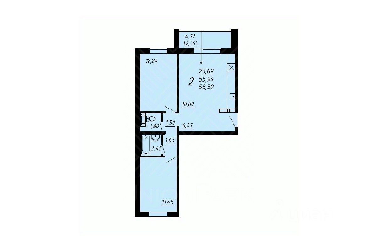 "Вайт-бокс": Входная дверь, наливные полы, выровненные стены, разведенная электрика с розетками, установленные счетчики воды, радиаторы и унитаз.