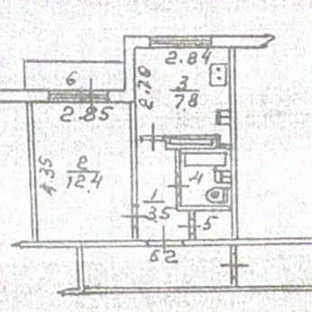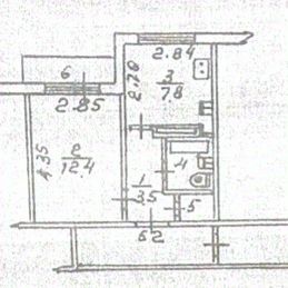 Планировка: Комната 12.4 м² + Кухня 7.8 м²