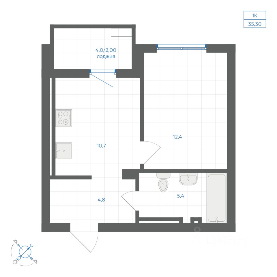 Общая площадь35,3 м²