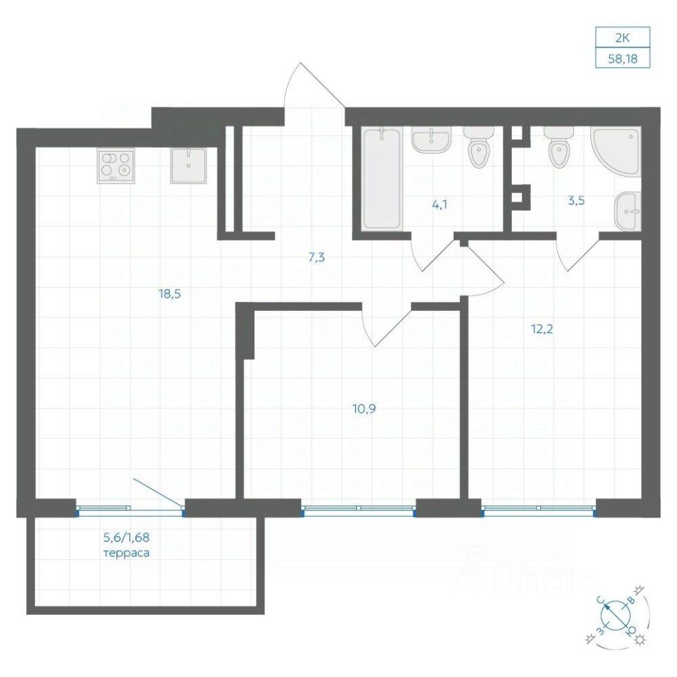Общая площадь58,18 м²