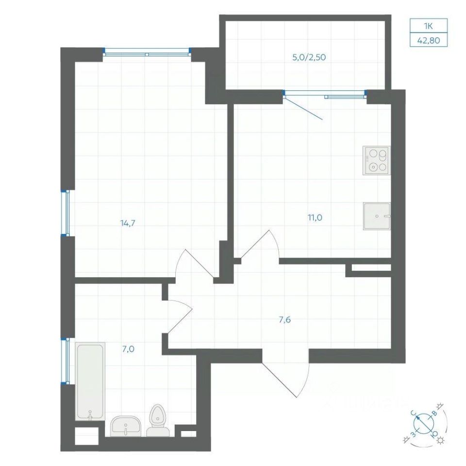 Общая площадь42,8 м²