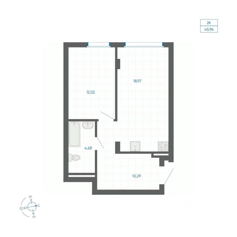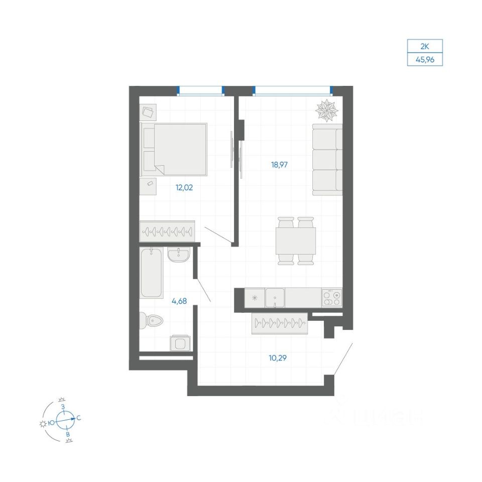 Общая площадь45,96 м²