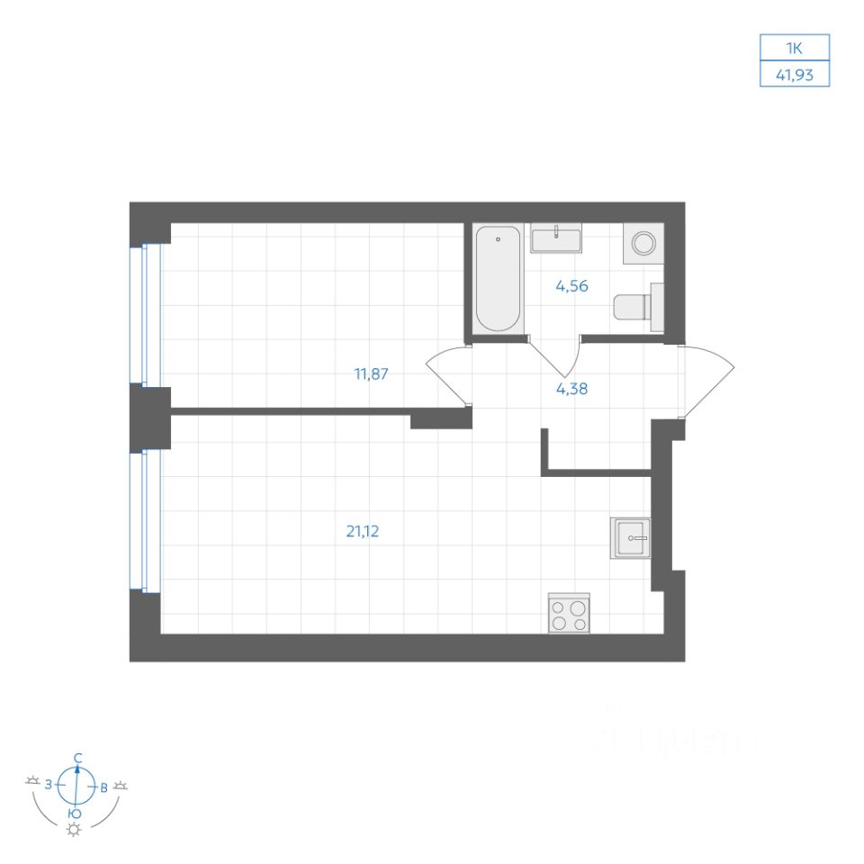 Общая площадь41,93 м²