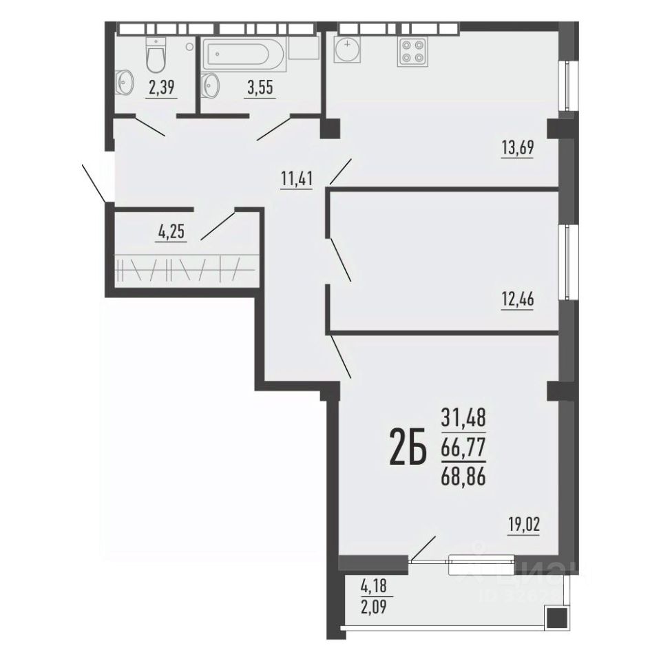 Общая площадь66,6 м²