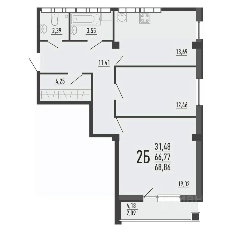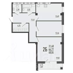 Общая площадь66,8 м²