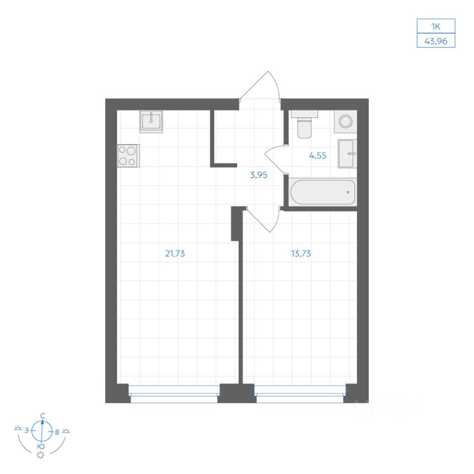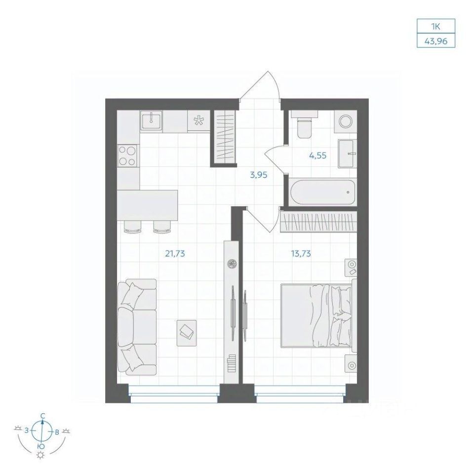 Общая площадь43,96 м²