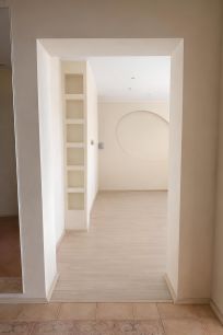 • В зале, кухне и коридоре — венецианская штукатурка, придающая интерьеру глубину, благородство и архитектурную выразительность
