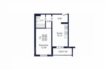 Общая площадь37,57 м²