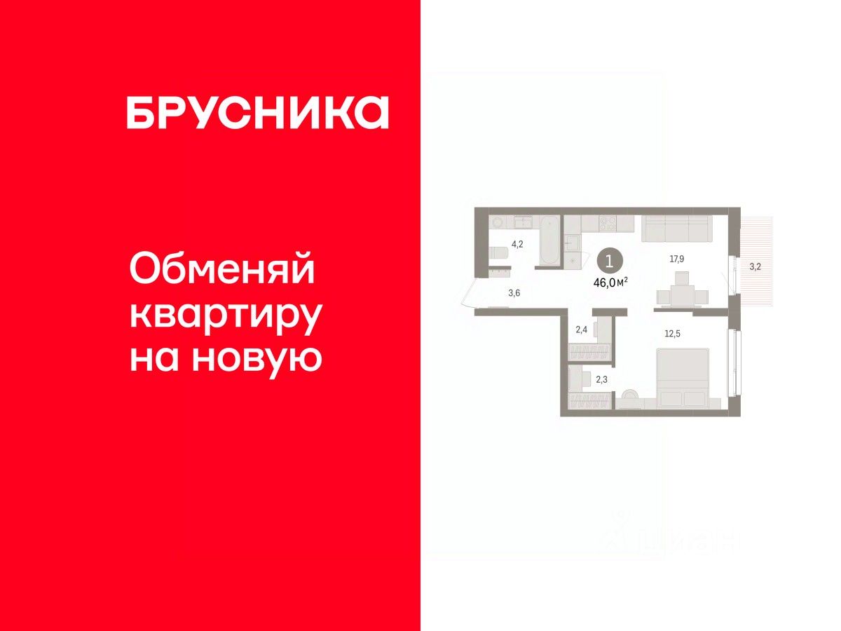 Просторная 1-комн. квартира с предчистовой отделкой в ЖК "Брусника в Эльтауне" на 6 этаже. Общая площадь: 45.97 кв.м., жилая: 12.5 кв.м., площадь просторной кухни-гостиной: 17.9 кв.м. Все окна выходят на одну сторону. В квартире один балкон, один совмещенный санузел. Высота потолков 2.7 м.