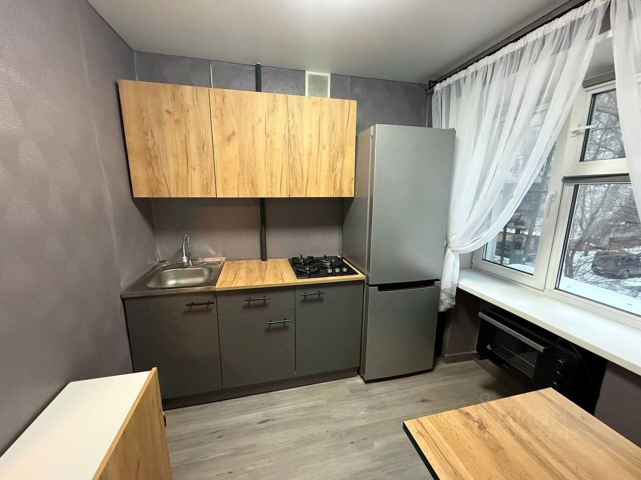 Готова к проживанию: Стены выровнены, на полу качественный ламинат, в санузле современный кафель.