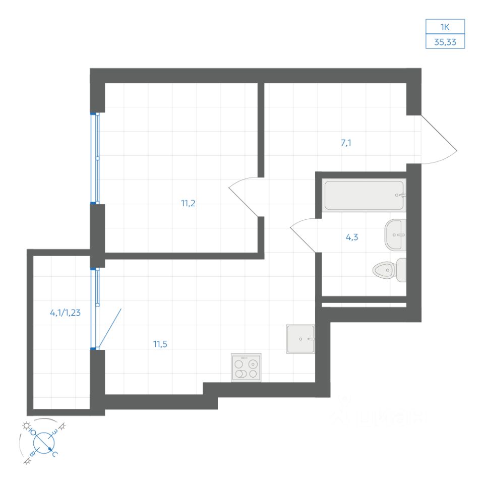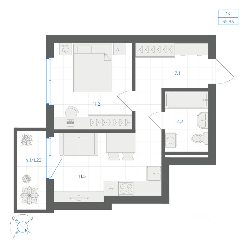 Общая площадь35,33 м²