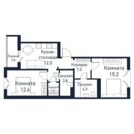 Продается студия + 2 спальни площадью 57,63 кв.м.