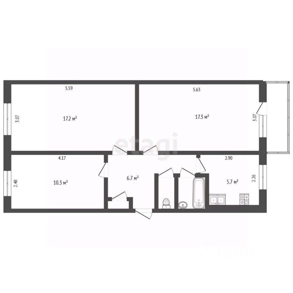 Необходим ремонт в коридоре, санузле, кухонном помещении и на балконе.
