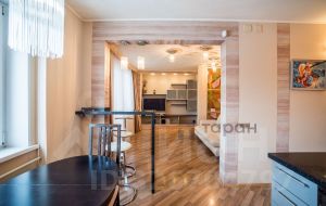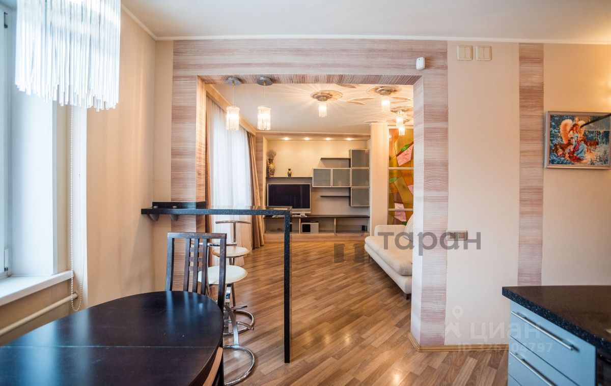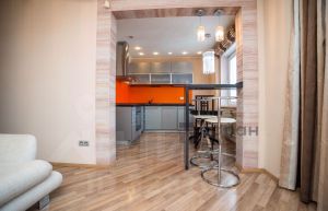 Просторная кухня-гостиная: обширное пространство объединяет кухню и зону гостиной, создавая ощущение простора и света благодаря грамотно подобранному дизайну освещения и качественной отделке стен и потолков.