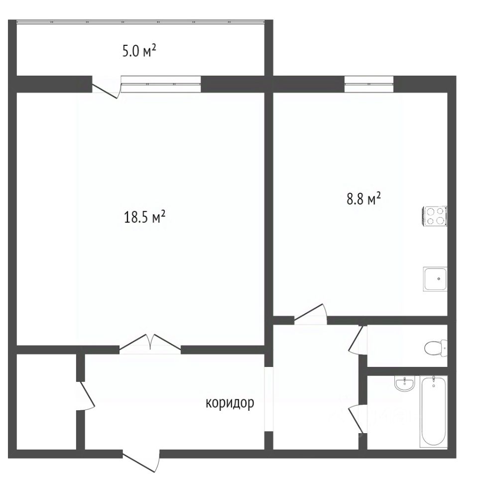 Общая площадь 40,3 м² + большой застеклённый балкон 4,3 м².