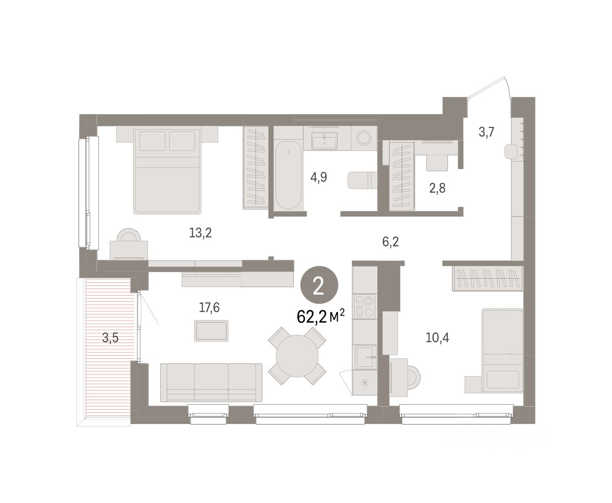 Просторная двухкомнатная квартира с предчистовой отделкой в ЖК "Брусника в Эльтауне" на 4 этаже. Общая площадь: 62.19 кв.м. Высота потолков 2.7 м. Дом монолитный, многоподъездный, переменной этажности, от 6 до 8 этажей. Квартира находится в 1-й секции высотой 8 этажей в корпусе 1. На этаже 4 квартиры. В подъезде 1 пассажирский и 1 грузовой лифт. Окончание строительства - 4 квартал 2028 года. Оформление сделки по договору долевого участия. Квартира с кухней-гостиной и двумя спальнями в Брусника в Эльтауне. Особенности планировки: гардеробная, лоджия, разнесённые спальни. квартиры в нашей базе: ЛТН01.1-Ж1.4.6. Квартал "Брусника в Эльтауне" расположился к северу-западу от Челябинска в окружении лесного массива, рядом с Лебединым прудом и Скалистым озером. Две главных слова, характеризующих Эльтаун, — концентрация и разнообразие. Его структуру формируют сразу несколько типов застройки — коттеджи, таунхаусы, квартиры в мало- и среднеэтажных домах, в перспективе нескольких лет здесь будут открыты десятки кафе, ресторанов, магазинов, аптек, медицинских и фитнес-центров. Для круглогодичного отдыха в городе построят собственный курорт. В Эльтауне будет действовать концепция непрерывного образования. Уже открыт муниципальный детский сад "Ёлочка" на 230 мест. В планах — инновационная школа на 1100 учеников. Кроме того, в Эльтауне организован Научно-исследовательский центр девелопмента МBA и МФТИ — одного из лучших вузов страны. Брусника стала полноправным девелопером Эльтауна. Мы построим здесь новый квартал со среднеэтажным жильём, богатым озеленением и разнообразной коммерческой и социальной инфраструктурой. Квартал Брусники расположен на въезде в город и станет его лицом. Недалеко от проекта проходит Новоградский тракт. По нему можно быстро добраться до Челябинска, озёр Увильды, Тургояк, Кисегач и Еловое, горнолыжных курортов "Солнечная долина", "Евразия" и "Завьялиха", парков "Таганай" и "Зюраткуль". Между Эльтауном и Челябинском курсирует автобус. Количество маршрутов и остановок общественного транспорта будет постоянно увеличиваться. До Челябинска — 5 минут на автомобиле До железнодорожного вокзала — 35 минут До аэропорта — 45 минут Проект Брусники в Эльтауне — комплексная застройка, состоящая из домов высотой не более 8 этажей. Территория Брусники разделена на несколько функциональных зон. Со стороны улицы Павленкова мы спроектировали фронт с коммерцией и приветственными площадями. На первых этажах домов — кафе, магазины, рестораны, кружки и образовательные студии. В глубине квартала расположатся общественные пространства с дождевыми садами, огородами и рощей. Ближе к лесу — пространство, которое мы назвали "задний двор". Здесь — игровые лужайки, плейхабы, луг для пикников и йоги, волейбольные площадки, воркаут. В этой же части, на границе квартала, предусмотрена парковка, на которой мы высадим взрослые деревья и кустарники. #Z6Dc0s