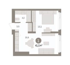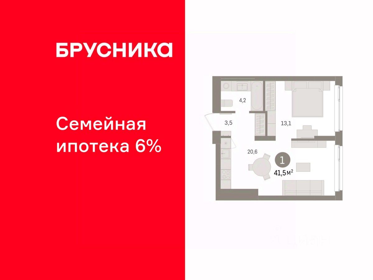 Продается 1-комн. квартира с предчистовой отделкой в ЖК "Брусника в Эльтауне" на 2 этаже. Общая площадь: 41.51 кв.м. Высота потолков 2.7 м.