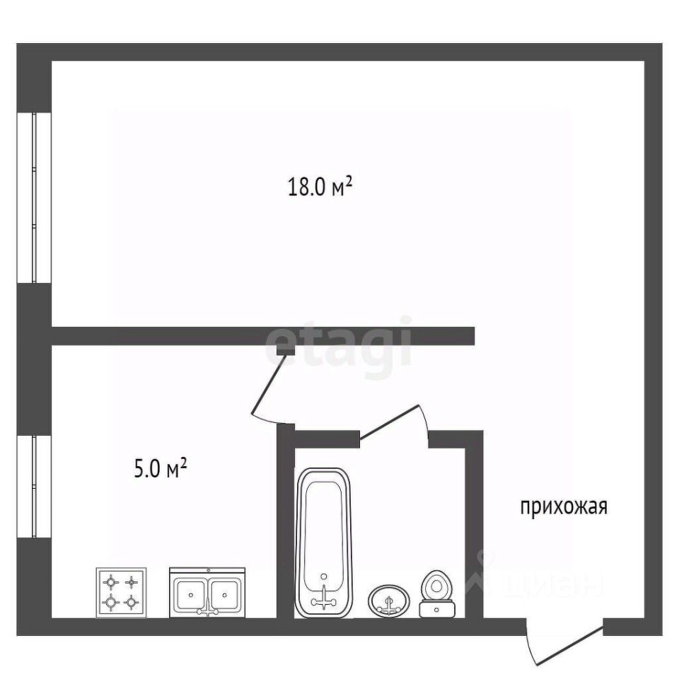 Планировка включает совмещенный санузел.
