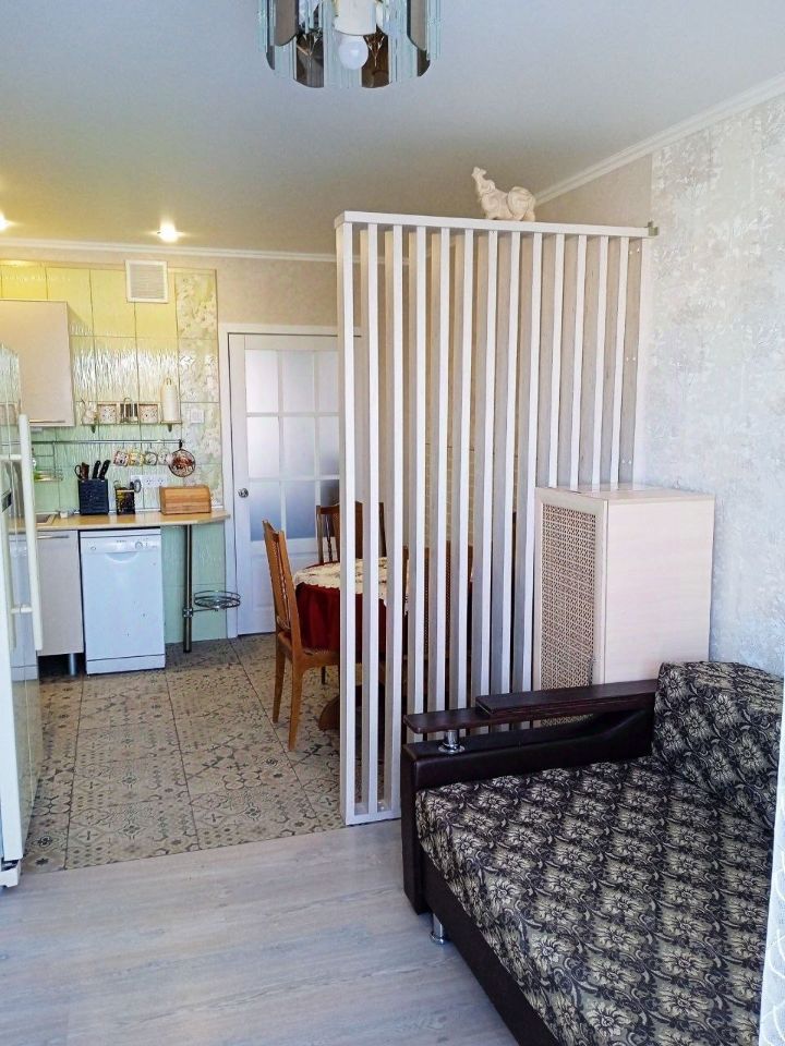 Просторная, светлая двухкомнатная квартира с изолированными комнатами: кухня-гостиная и спальня. Окна спальни выходят на восток, кухни-гостинной на запад - шикарная инсоляция и возможность сквозного проветривания. Удобная прихожая со шкафом купе, который не съедает полезное пространство. Квартира находится на торце здания, нет шумных соседей. Дом серии "Европа".