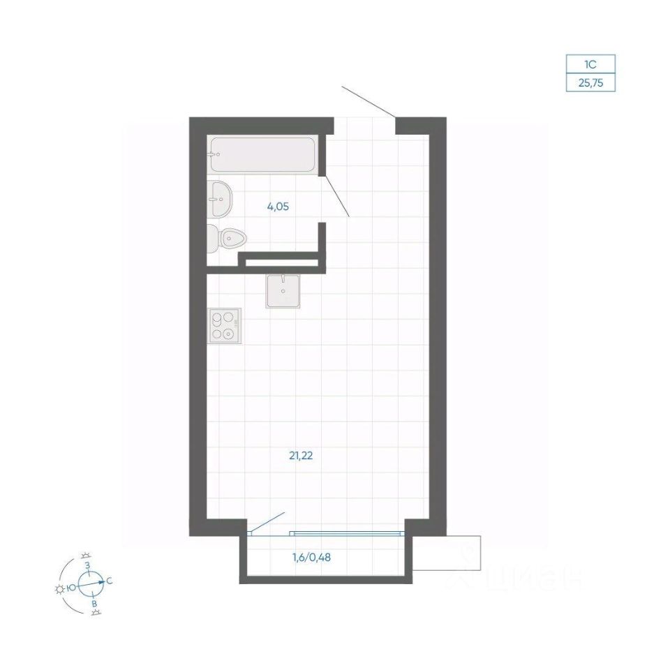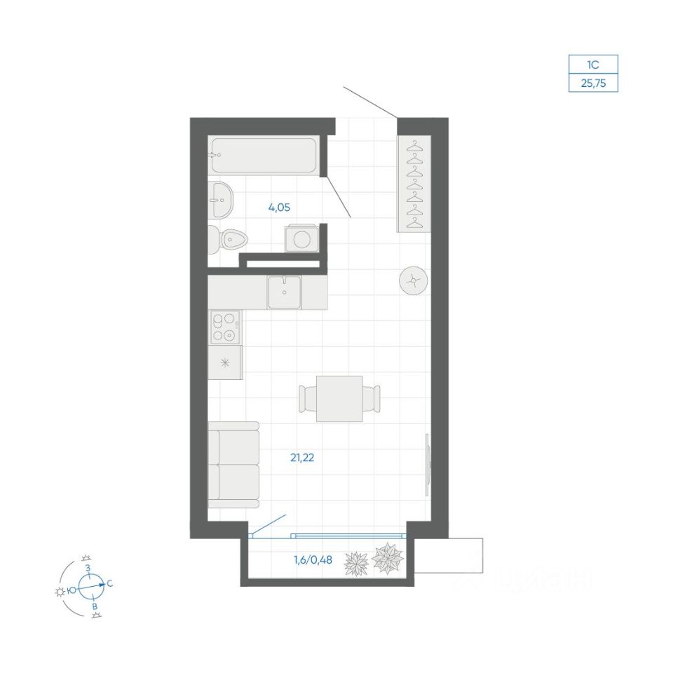 Общая площадь25,75 м²