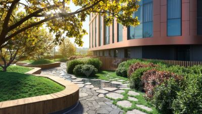 В распоряжении резидентов проекта просторное лобби, кафе на первом этаже, фитнес-центр, зоны коворкинга и соседский центр., а также общественные пространства, разработанные итальянскими дизайнерами известного бюро Iosa Ghini Associati. Также жителям доступен уютный внутренний двор на крыше, где можно насладиться зеленью и декоративным прудом.