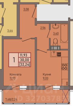 Площадь: 32 кв. м. Оптимальная планировка: просторная комната, отдельная кухня.