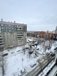 Окна выходят во двор. Кухня просторная, комната вместительная с нишей. Сан.узел совмещенный. В квартире евро остекление, включая балкон. Отдельная гардеробная.