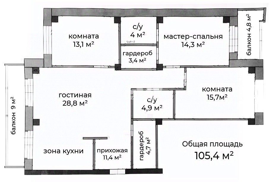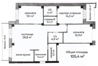 Общая площадь105,4 м²