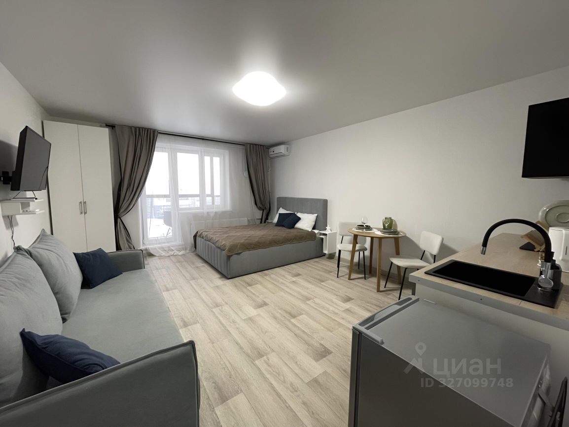 Квартира с евроремонтом. Просторная комната объединяет зону отдыха и кухню, поэтому можно эффективно использовать все пространство. В квартире есть совмещенный санузел с современной сантехникой. Для дополнительного комфорта имеется лоджия, где можно наслаждаться утренним кофе.
