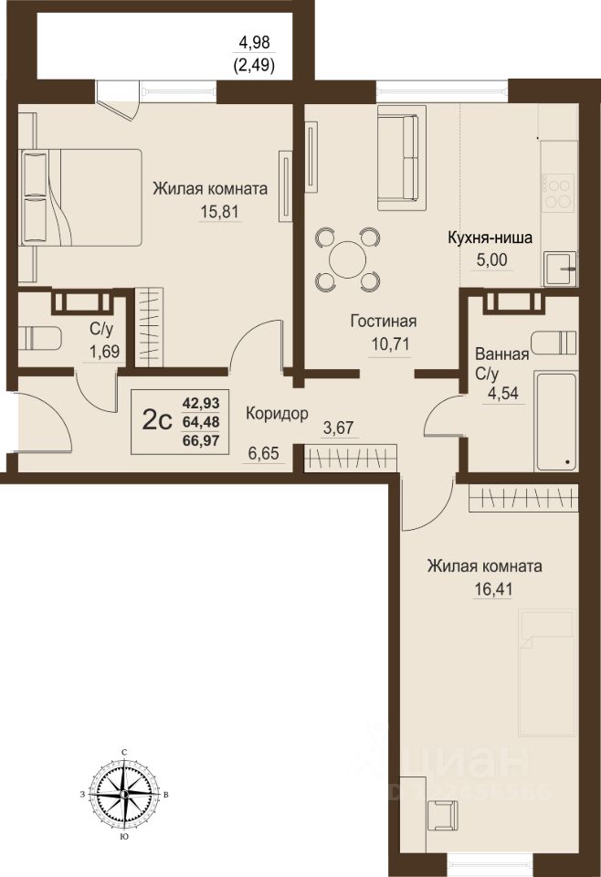 Продаётся 3-комнатная квартира в сданном доме (Мечты, 21 (Дом 3)), срок сдачи: IV-кв. 2025, общей площадью 64.48 кв.м., на 5 этаже. Жилой комплекс Шишкин расположен в экологически чистом направлении северо-запада в 2 км от Челябинска по Новоградскому тракту.