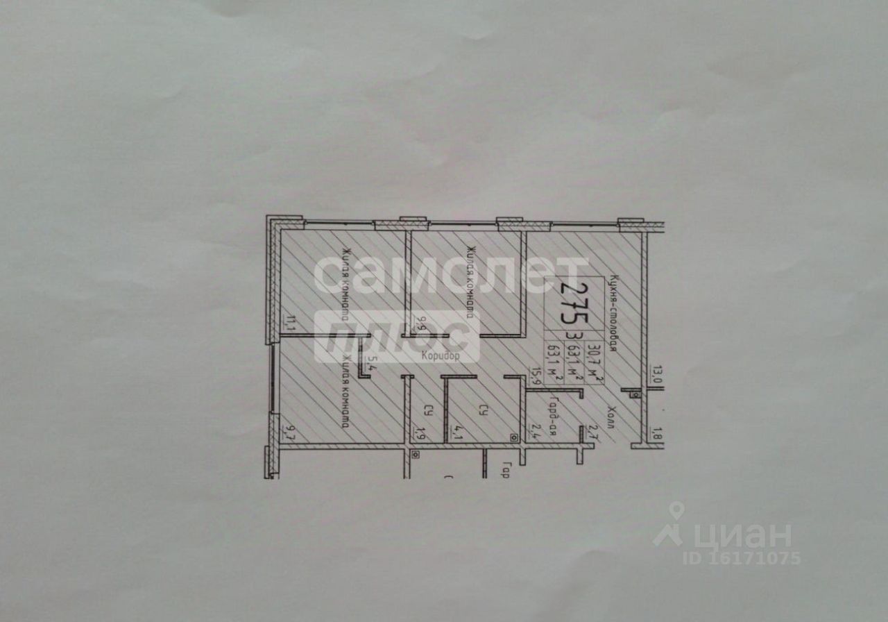 Раздельный санузел, кладовая-гардеробная, прихожая, широкий коридор, три изолированных спальни и кухня-гостиная 16 кв.м.