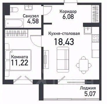 • Просторная кухня-гостиная — 20 м²