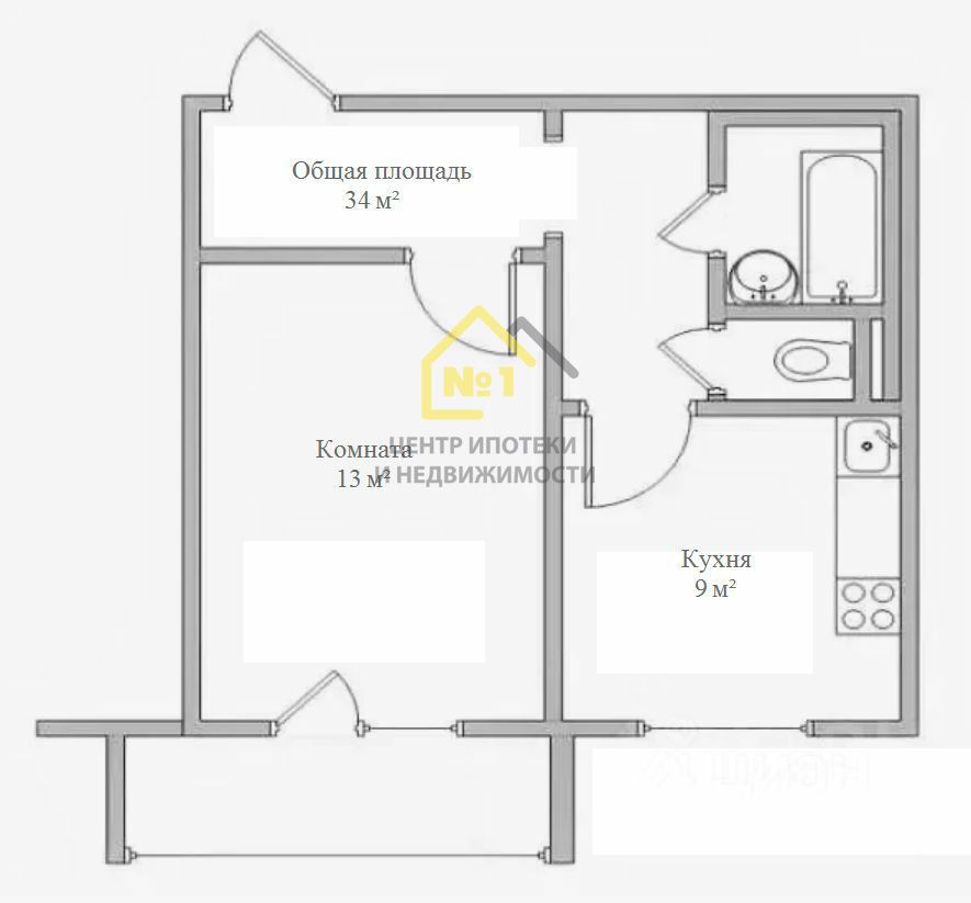 * кухня 9кв.м, комната 13кв.м,