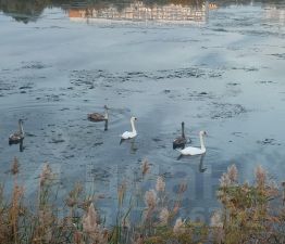Вид на город и лебедей