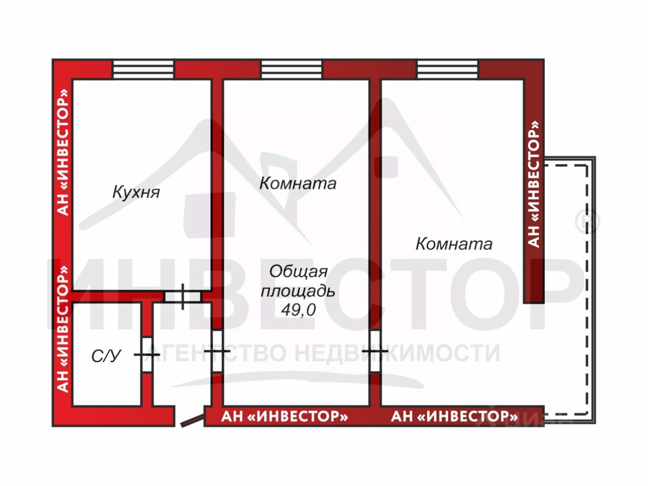 Этот вариант подойдет для семьи, для студентов, для сдачи в аренду.