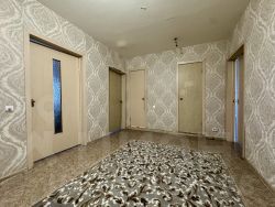 Квартира обладает продуманной планировкой: все три комнаты изолированы друг от друга, что обеспечивает дополнительное удобство для большой семьи. Просторные помещения включают в себя большую гостиную, кухню и три спальни. Полы покрыты качественным линолеумом, стены оклеены обоями, создавая теплую и уютную атмосферу.