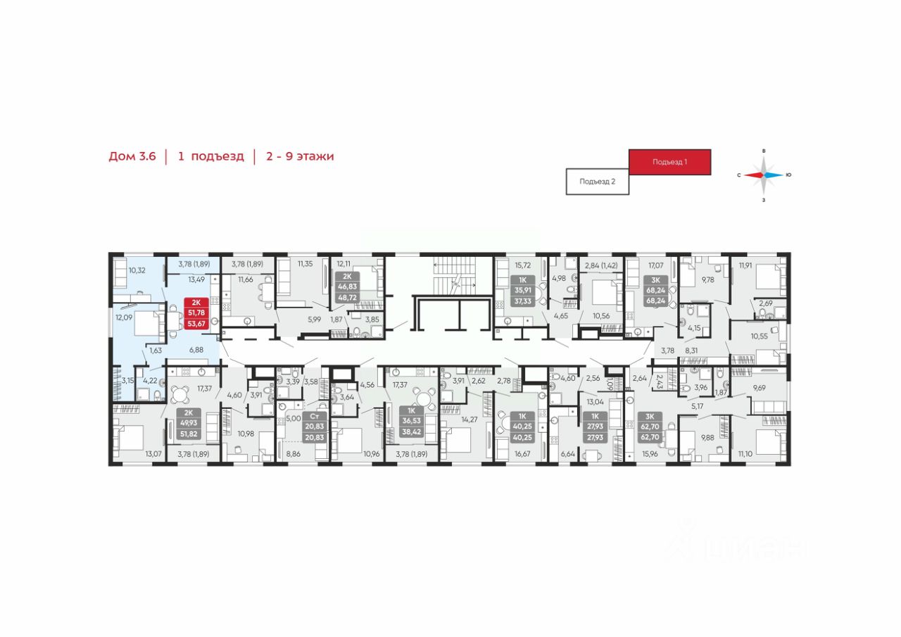 Общая площадь53,67 м²