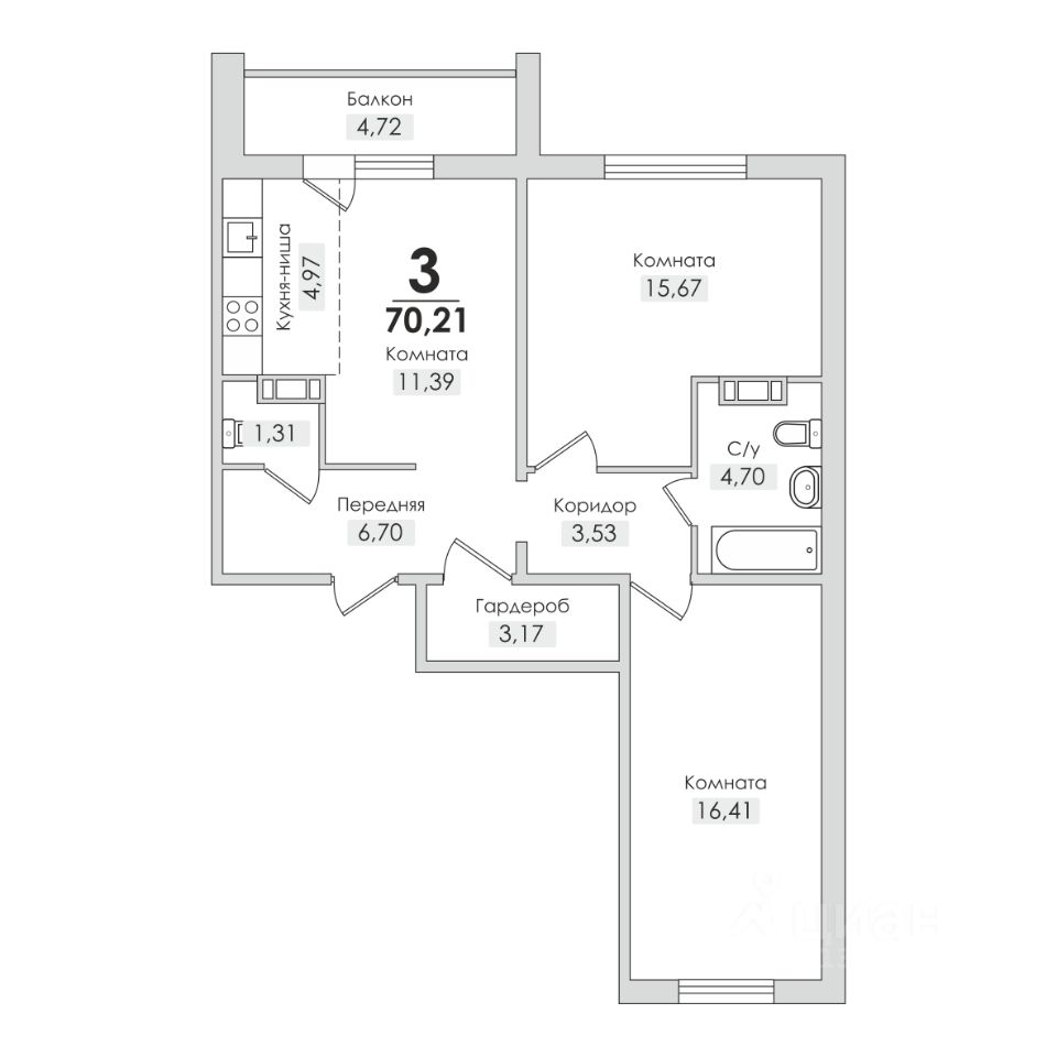 70,21 м²