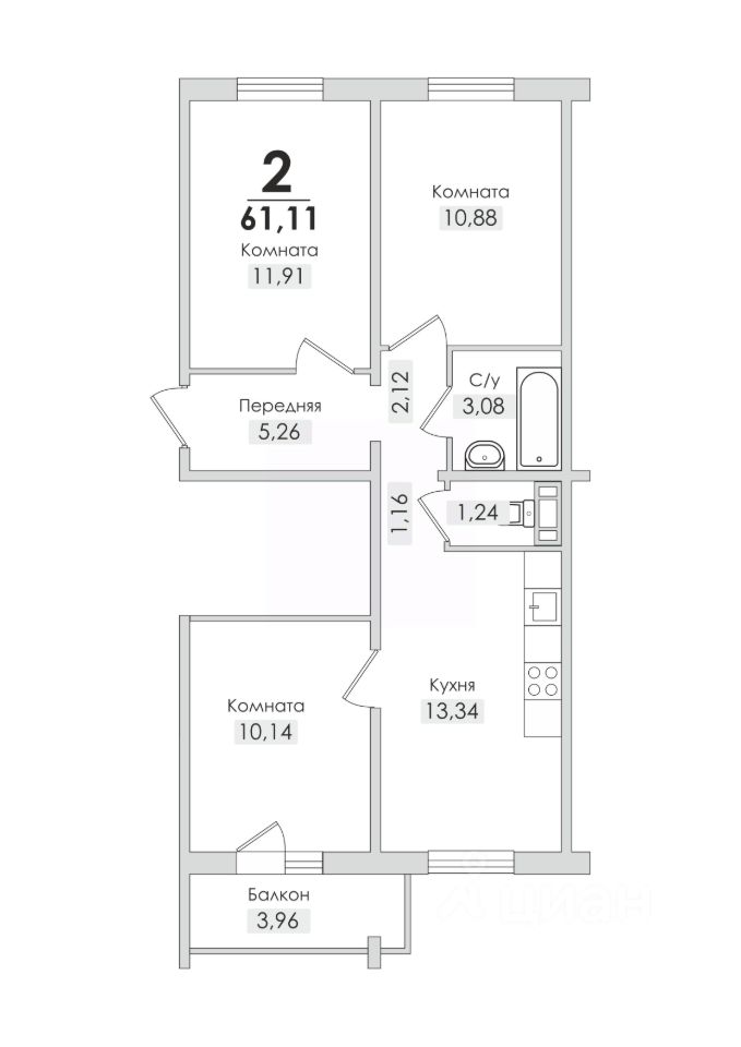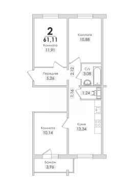 61,11 м²