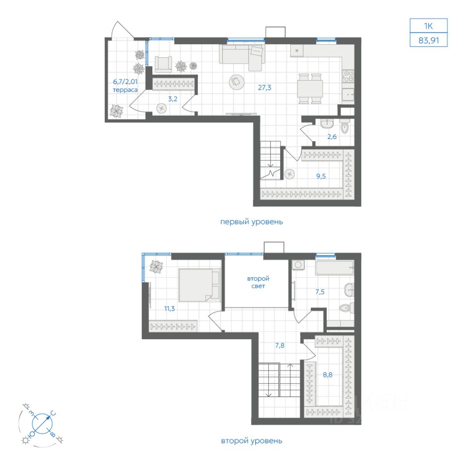 Общая площадь83,91 м²
