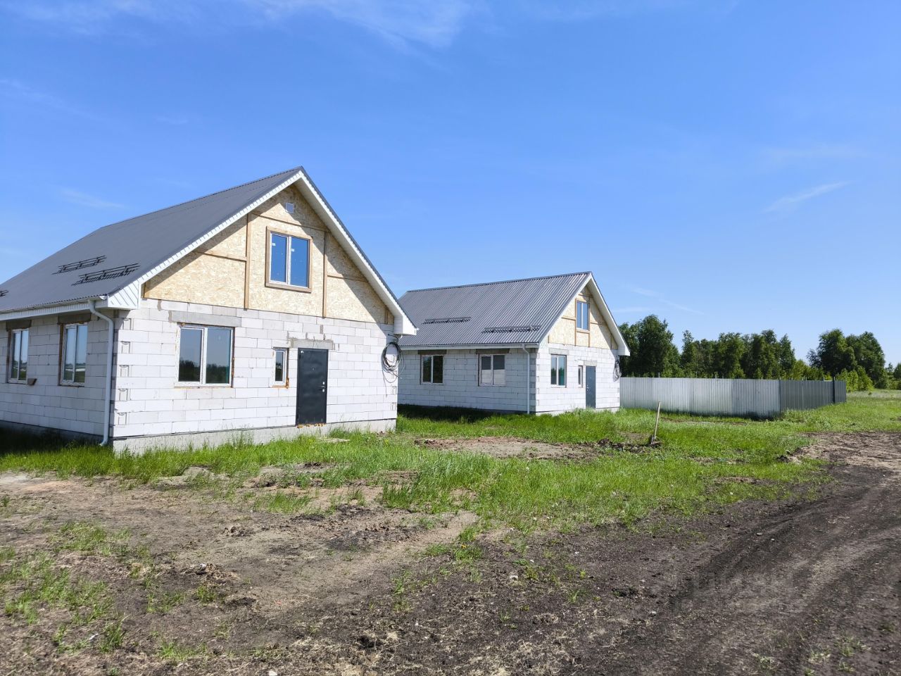 Недалеко от участка лес. На соседних участках идет стройка.