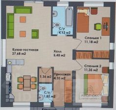 Планировка: кухня гостиная и две спальни.