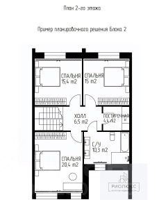 Второй этаж: Холл (5,1 кв.м.),совмещенный санузел ( 4,6 кв.м.),две спальни ( 12,2 кв.м.,12,7 кв.м.), мастерспальня (17,8 кв.м)