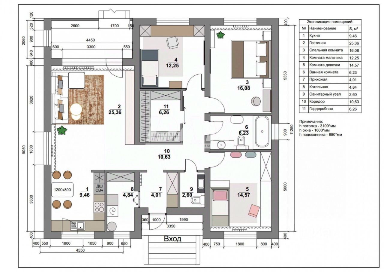 Функциональная светлая студия-гостиная с выходом на террасу + три спальные комнаты, просторная гардеробная комната, 2 санузла и котельная.