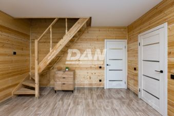 Удобная планировка: на входе прихожая-тамбур, отсекающий холодный воздух зимой. Надежная входная дверь с терморазрывом. Кухня-гостиная с выходом на террасу с летней посадкой. Также на первом этаже котельная, душевая, туалет и сауна. На втором этаже три спальни и свой санузел. Спальни ориентированы на восток и на запад. Кухонное окно выходит на участок, на юг. Дом посажен с таким расчетом, чтобы большая часть участка была максимально освещена солнцем.