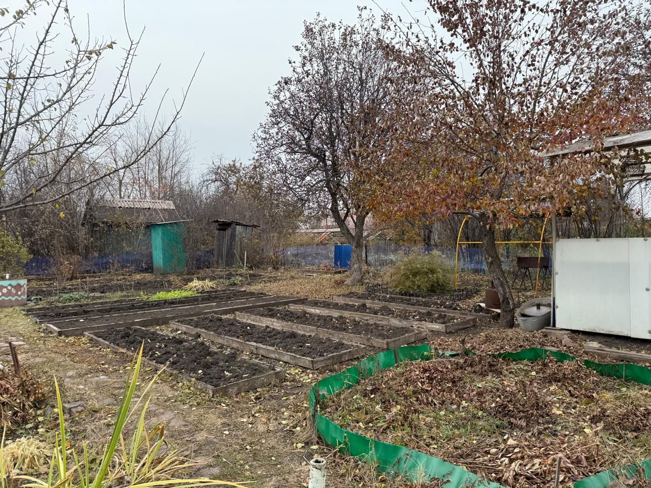 На участке стоят 2 теплицы 3х4, парник 4х1.