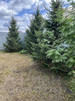 Дом подходит для круглогодичного проживания, есть все коммуникации: электричество, отопление, канализация. Во дворе имеется парковочное место, огород с теплицей 8x3 метра, терраса и детская площадка. Посажены плодово-ягодные деревья и кустарники. По периметру участка посажены декоративные хвойные деревья.