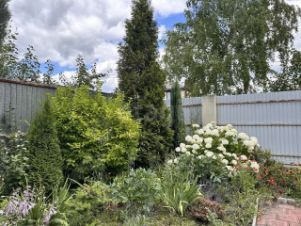 Правильной формы земельный участок 8 соток, ухоженный (ели, туи, можжевельник, сосна, кустарники, розы, гортензии и тд), забор из профнастила по периметру.