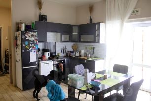 1 этаж: просторная кухня-столовая (есть вся необходимая техника), гостевая спальня, удобный санузел и отдельный кабинет (можно переделать под детскую или гардеробную).